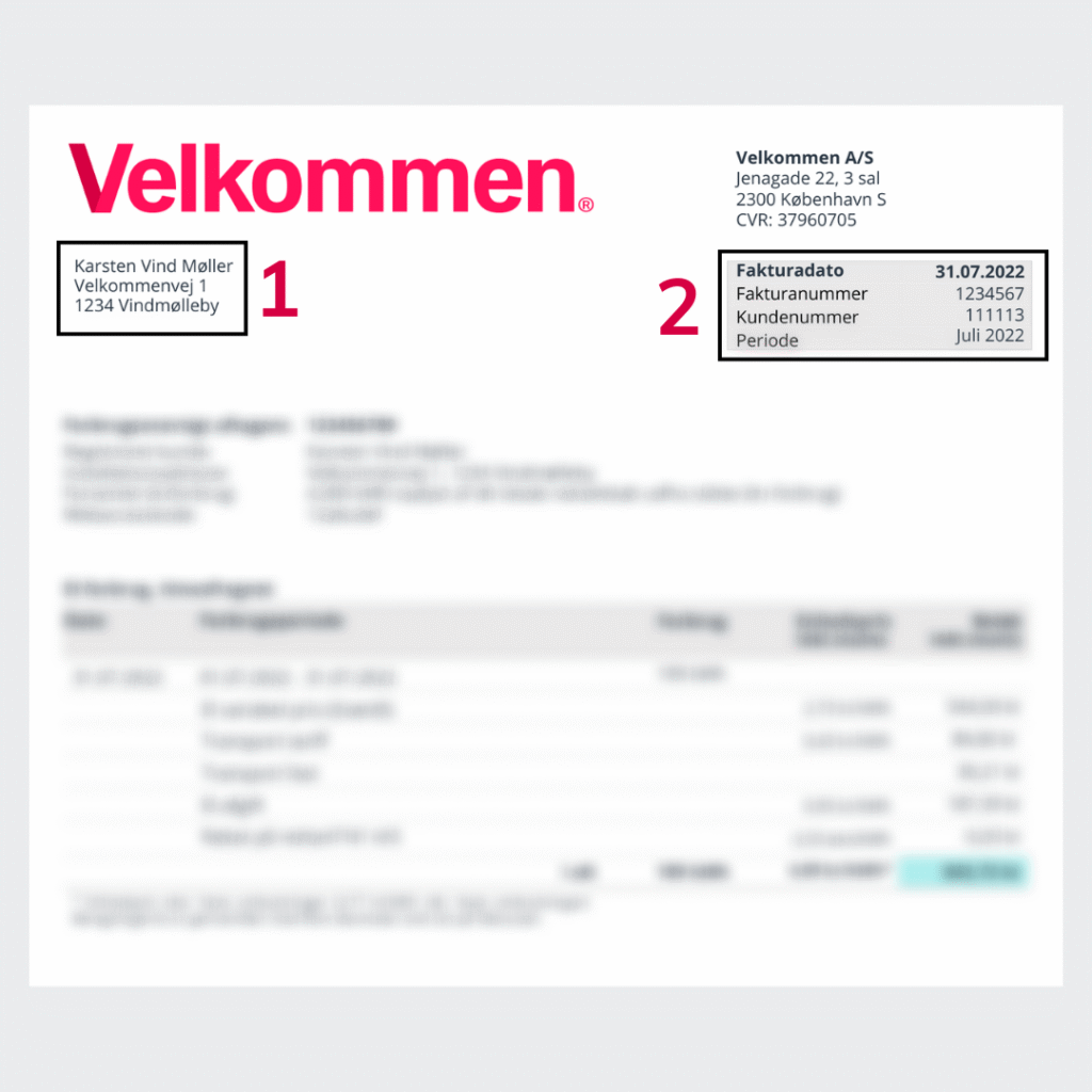 I dette felt finder du personlige oplysninger som denne fakturaregning er sendt til. Herunder navn, adresse og postnummer/by.
