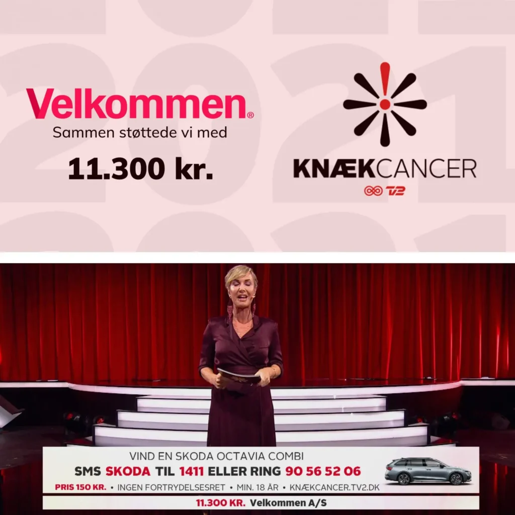 Velkommen donerede i 2021 11.300 kr. til Knæk Cancer.